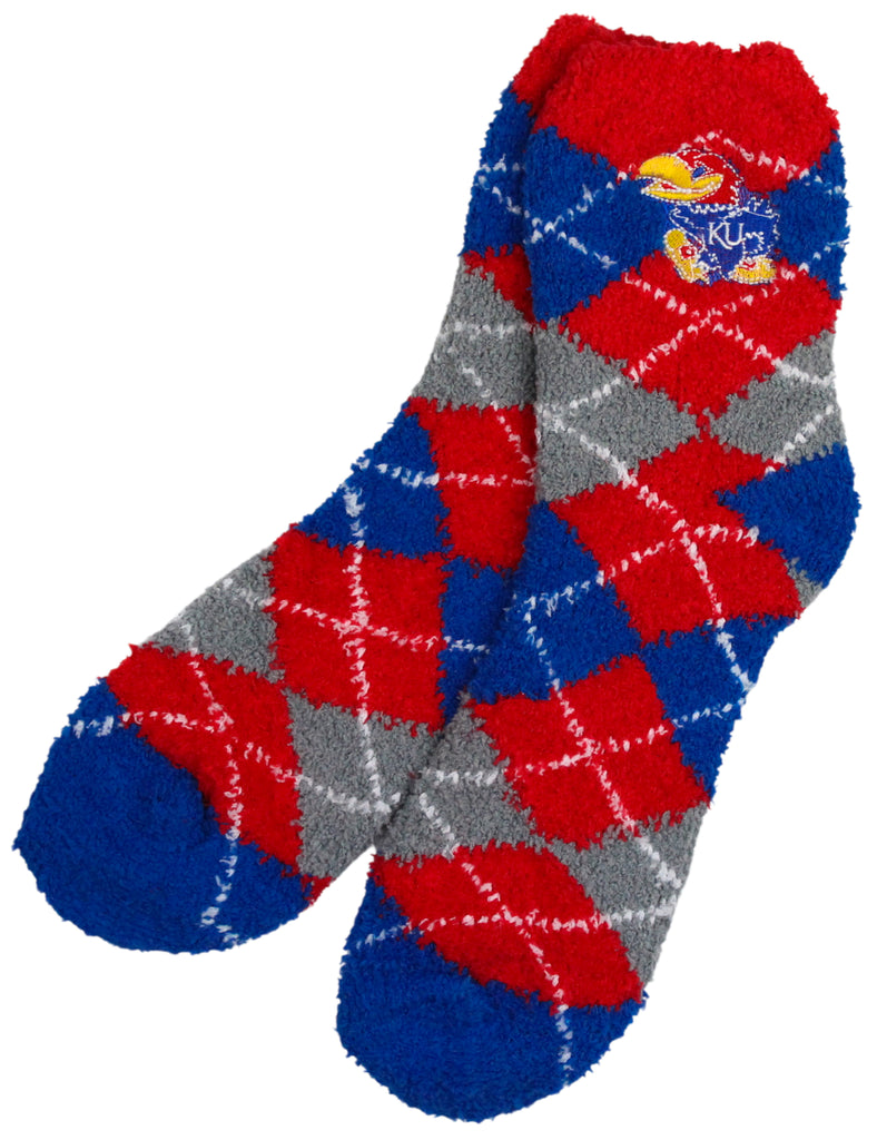 Support your Kansas Jayhawks by wearing your Officially Licensed Kansas Jayhawks Fuzzy Socks that can also be worn as Slippers!